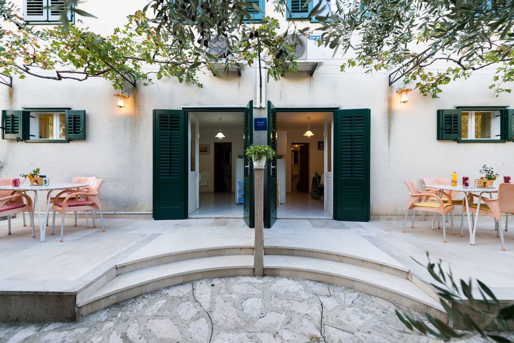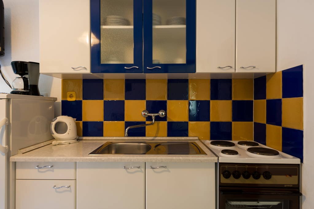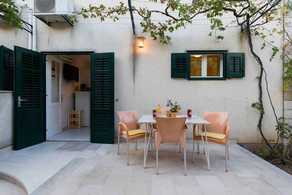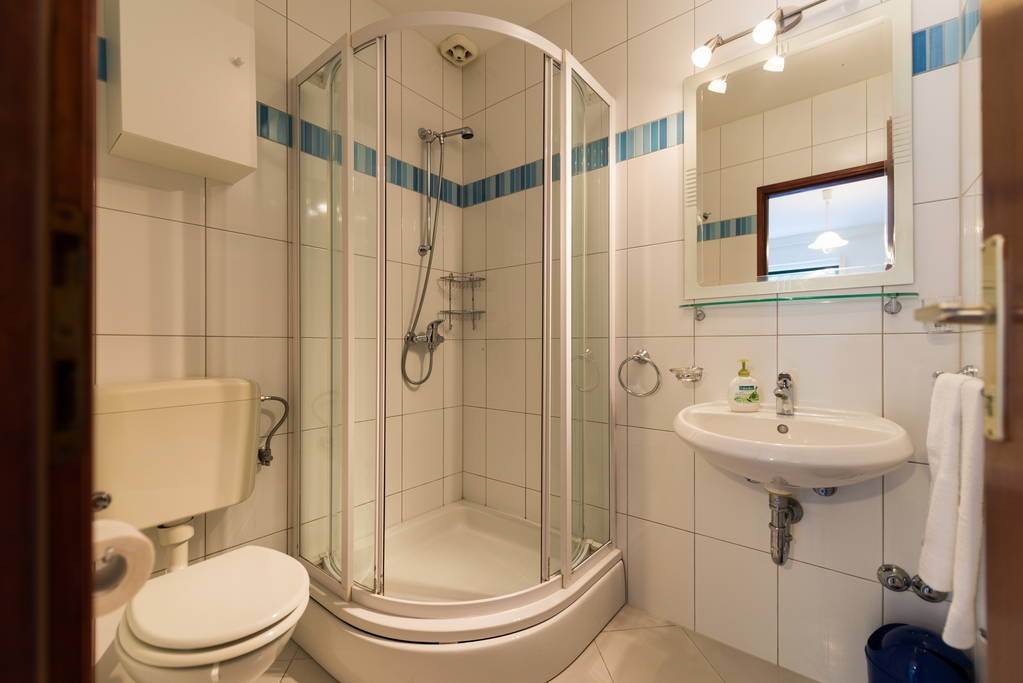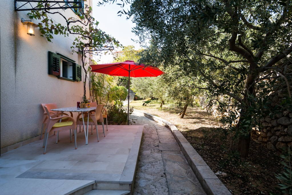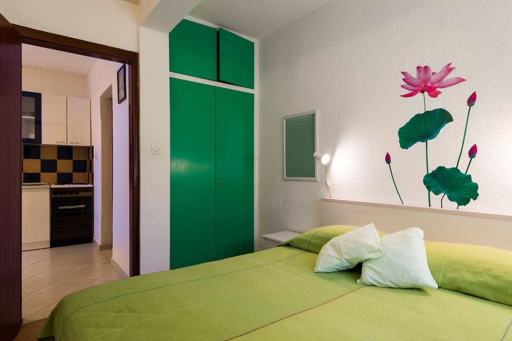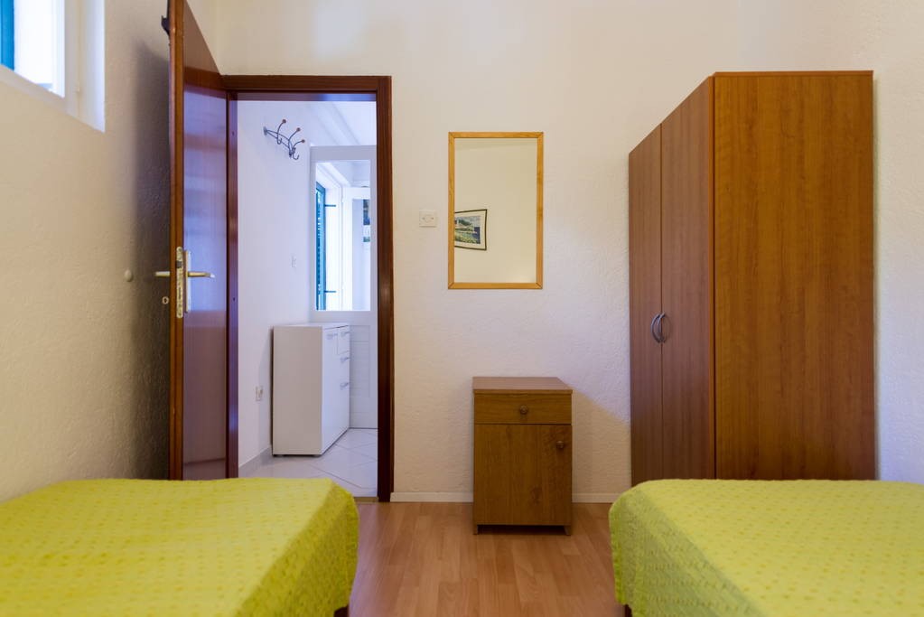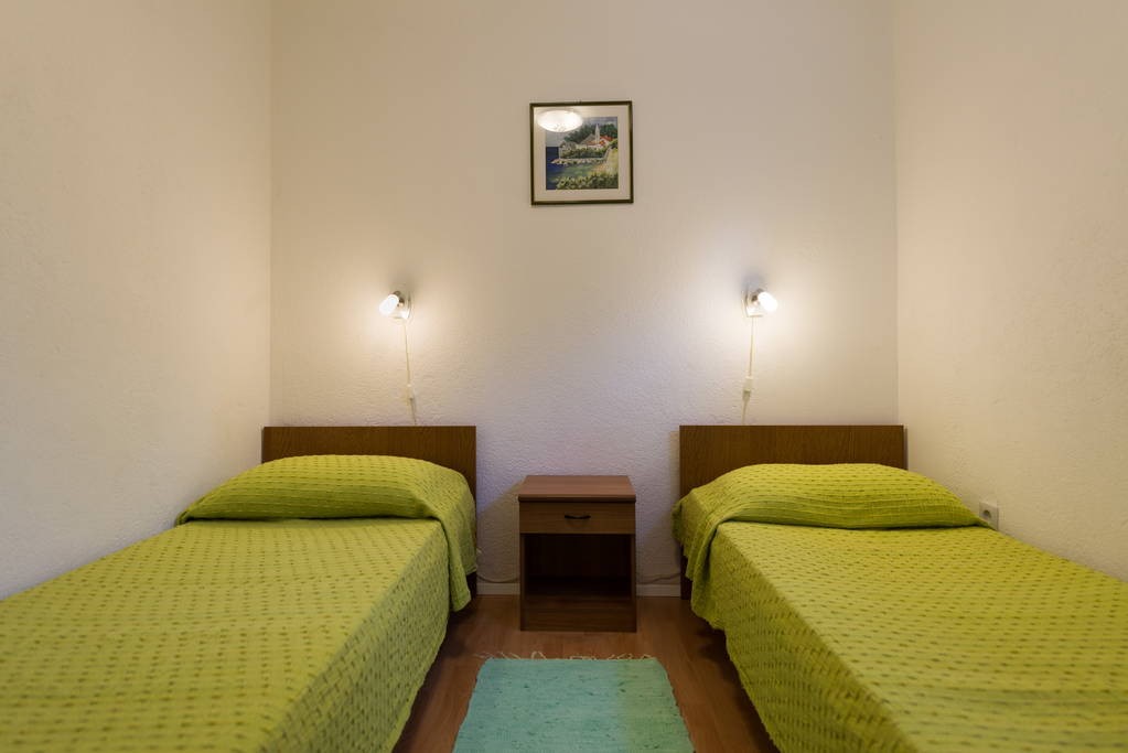 Apartment is located at the north side of house, with terrace. It consists of kitchen with dining room, one bedroom with double bed, one bedroom with twin bed and bathroom. It is equipped with Wi-Fi ADSL Internet, air conditioning, TV with satellite, safe, microwave oven, coffee maker, water heater, hairdryer and iron with ironing board.